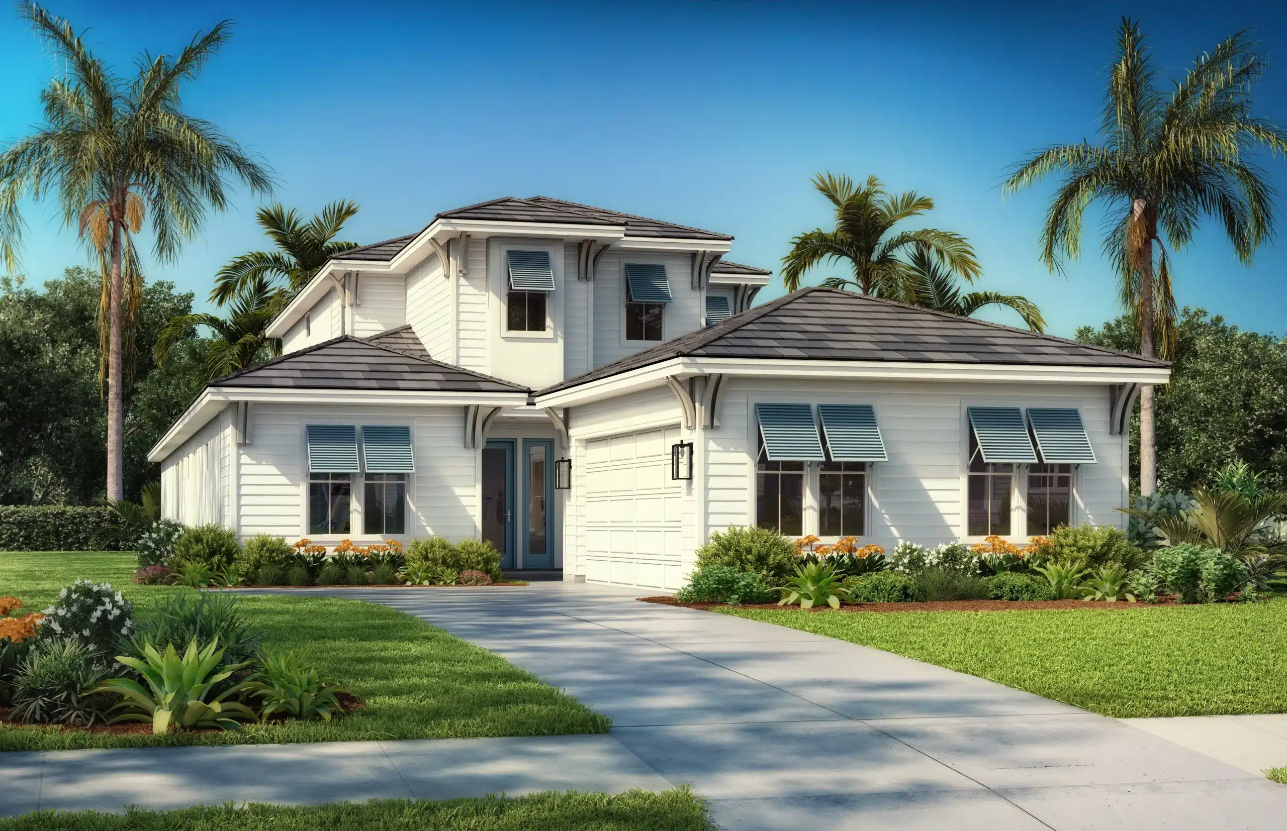 LOT 71 | The Veranda floor plan is designed for buyers who want a functional layout that supports both everyday living and coastal leisure. The first floor centers around an open main living area that brings the kitchen, casual dining, and great room together. This arrangement improves natural light, allows for easier movement between spaces, and encourages indoor to outdoor living through large sliding glass doors that open to the lanai. The owner’s suite is located on the first floor for convenience and privacy. Its placement away from the secondary bedroom reduces noise transfer and creates a more restful environment. The suite includes a spacious bath and walk-in areas that support organization and storage. A separate den on the first floor provides flexibility for work, study, or quiet space without interrupting the flow of the main living area. The second floor is designed to accommodate guests or growing households. Two additional bedrooms share a nearby bath, and the large bonus room creates a separate zone for entertainment or recreation. The covered balcony gives occupants a comfortable outdoor space on the upper level, which can enhance ventilation and broaden views depending on the homesite. Outdoor living is a key feature of this plan. The lanai can be enhanced with options like an outdoor kitchen or pool, which is especially valuable in Flagler Beach where year-round outdoor use is common. The plan also includes a thoughtful arrival area from the garage that helps manage daily routines, improves organization, and reduces clutter in the main living spaces.